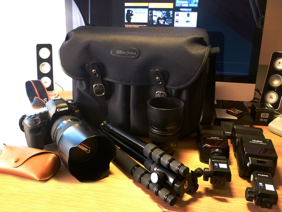 Not on the picture: Cleaning Stuff, flash accessories, an old film minolta camera, light modifiers and my collection of photography related books :)