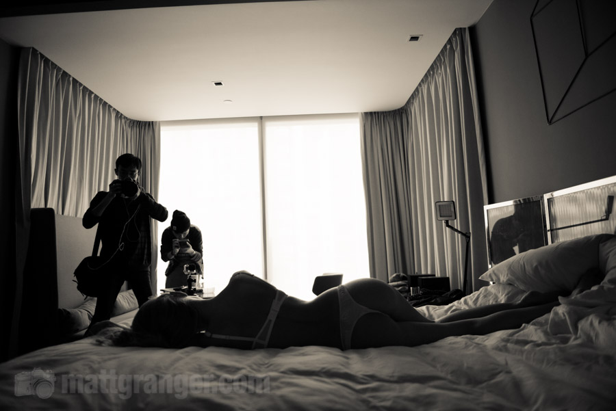 Unfortunately we did not have enough time to do a full Pro Tog Cheap Camera Challenge, so on the day we decided to film a 'How to shoot Nude Portraiture' video instead. But there's always a twist right? The conditions were that I could only use one camera and lens, it would all be in one room (my hotel room!), and I could not use ANY Flash or light modifiers - I had to use just the lights available in the room. Oh - and I only had about an hour to shoot and explain as we went.